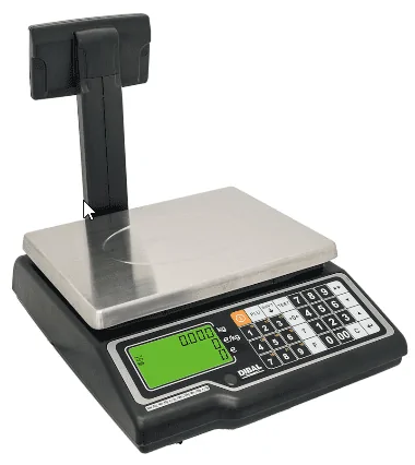 - Display: 2 displays (vendedo + comprador) LCD Precio – Peso – Importe, con retroiluminación